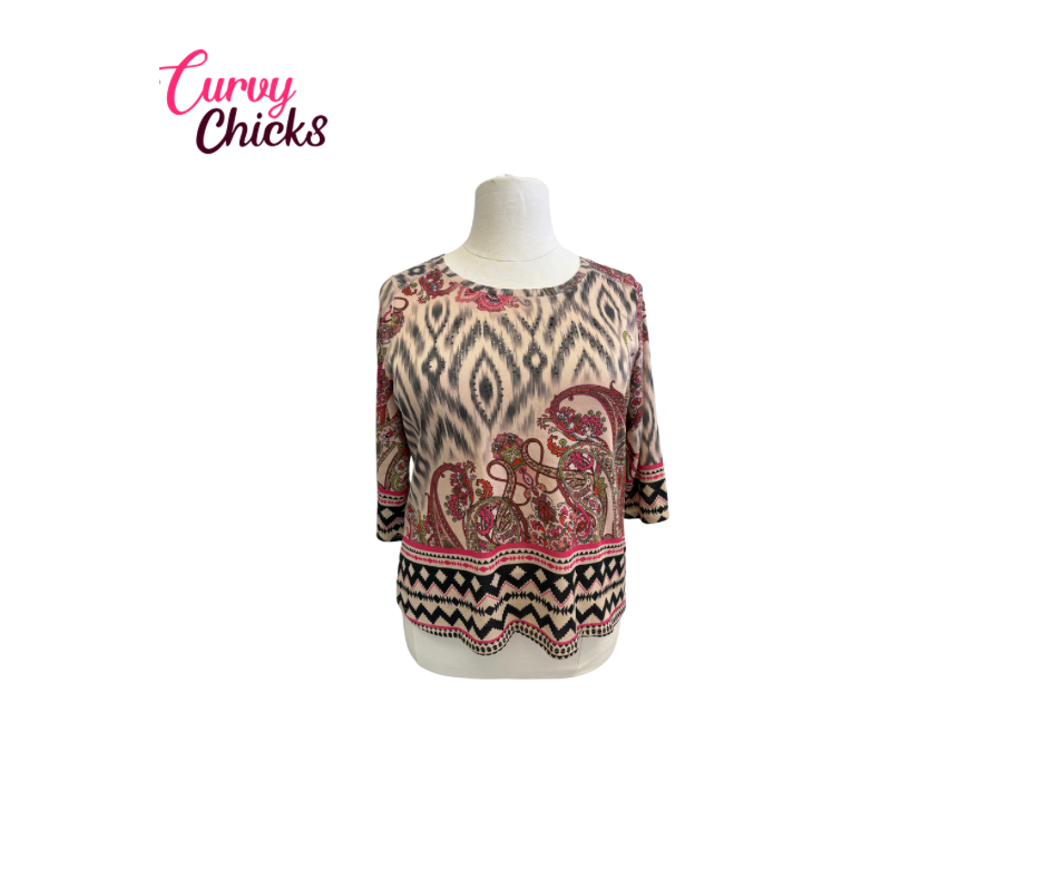 Make a bold statement in this new with tags French Blue top, size 1X. With eye-catching prints and embellishments.